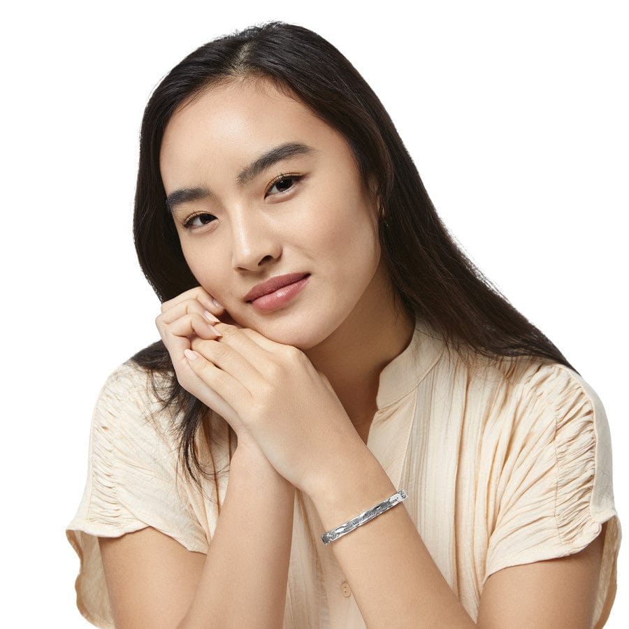 Inspirational words and small crystal highlights make this bangle both meaningful and fashionable. Etched saying "Some people come into our lives, leave footprints on our hearts, and we are never the same."