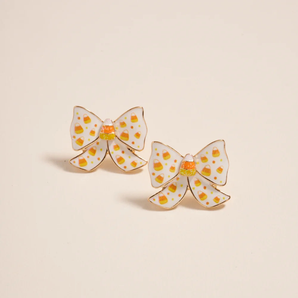 Sweeten your look with these playful Candy Corn Bow earrings, featuring bright enamel for a fun, festive touch.