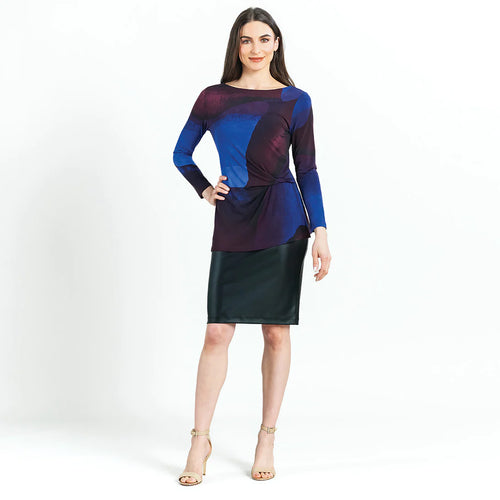Sold outTU300P1 Water Color Soft Knit Tunic with Side Twist Detail