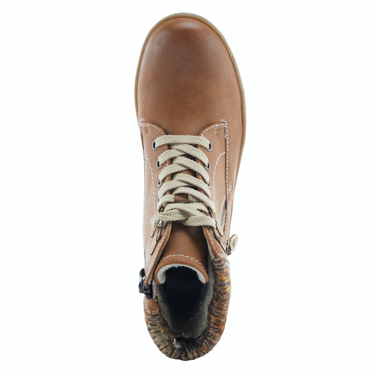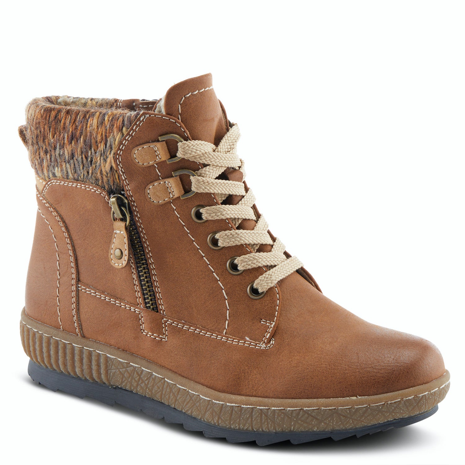 Relife bootie showcasing a beautiful sweater top, decorative side zipper, and cozy sherpa-like lining on a shock-absorbing, all-day wear OUTSOLE. Upper: Synthetic Lining: Sherpa, Textile Insole: Synthetic, Textile Outsole: TPR Closure: Lace-up, Zipper Heel Height: 1 1/2" Platform Height: 1 1/8" Shaft Height: 4 3/4" Circumference: 10"-12" Features: - Adjustable, Comfort, Flexible Sole, Padded Insole, Premium, Shock absorbent Outsole, Vegan Friendly, Water Resistant