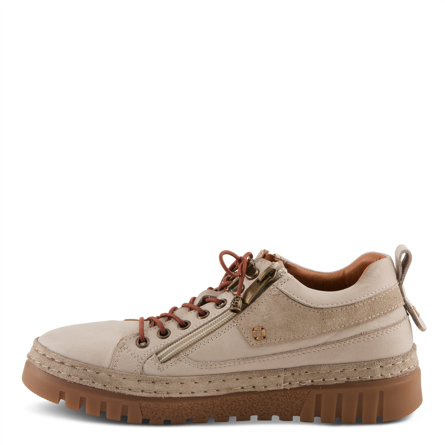 Upgrade your style with these trendy and durable women's casual shoes. Designed for both fashion and functionality, these shoes feature a sleek leather upper with contrast stitching, stylish suede accents, and a unique lace-up design with a convenient double side functional zipper. The thick rubber sole provides excellent traction, while the cushioned removable insole ensures all-day comfort. Perfect for everyday wear, outdoor adventures, or casual outings, these shoes bring versatility and elegance to your wardrobe. Upper: Leather, Suede Lining: Leather Insole: Leather Outsole: TPR (Thermoplastic Rubber) Closure: Zipper Heel Height: 1 1/4" Features: - Arch Support - Removable Insoles - Premium Leather & Suede Upper – Combines durability with a chic, modern aesthetic. - Cushioned Insole – Provides maximum comfort for long hours of wear. - Contrast Stitching & Metal Details – Adds a touch of sophistication and uniqueness. - Thick, Textured Rubber Sole – Ensures excellent traction and stability. - Fits true to size.